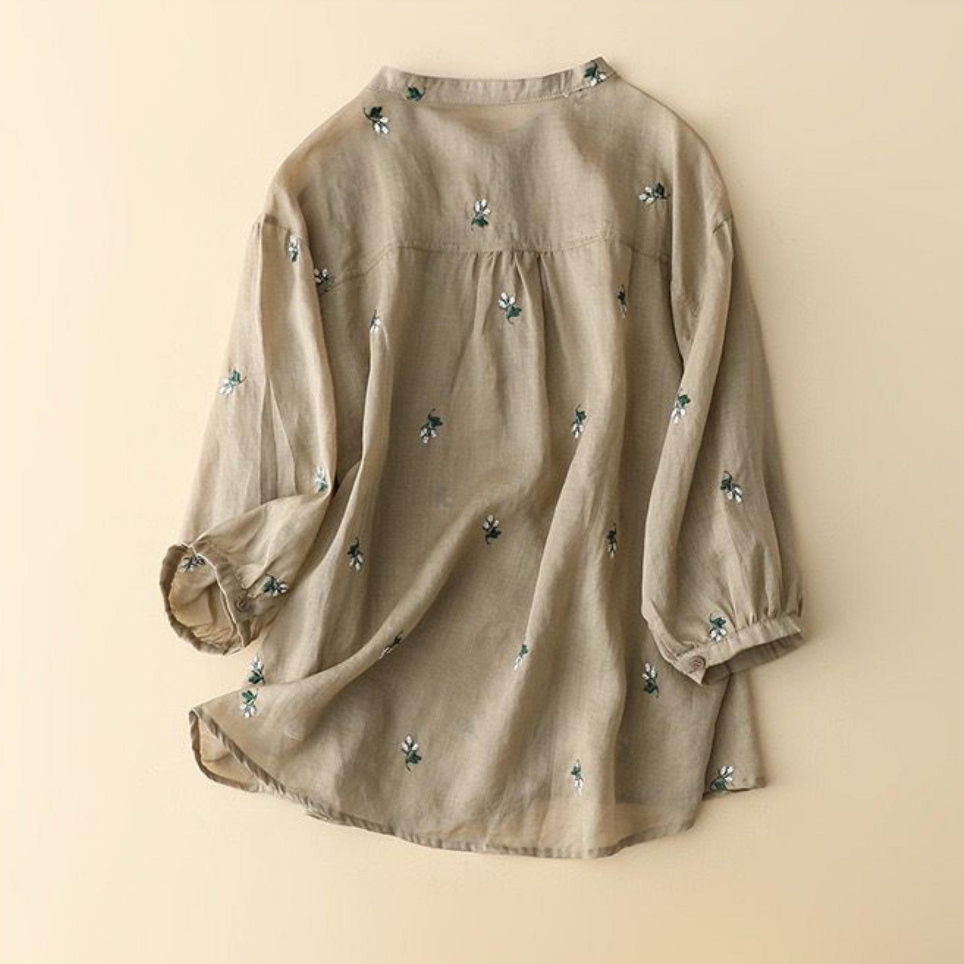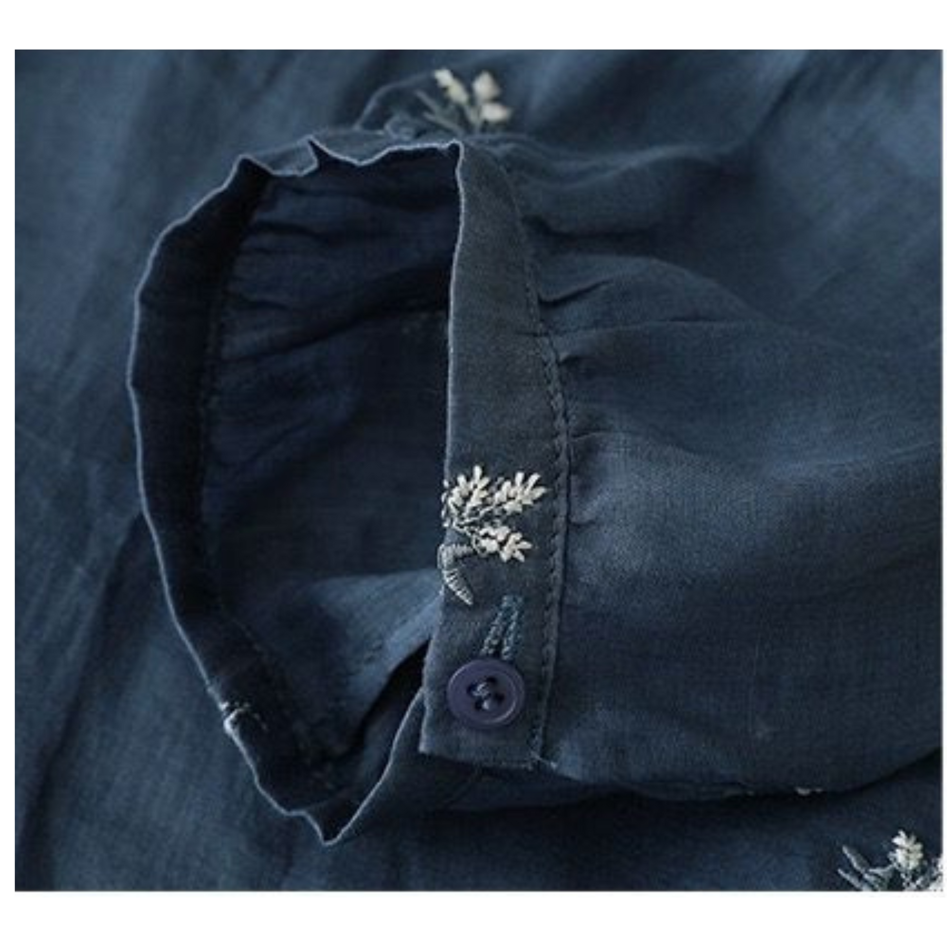 Cotton Floral Embroidered Comfortable Boat Neck Shirt